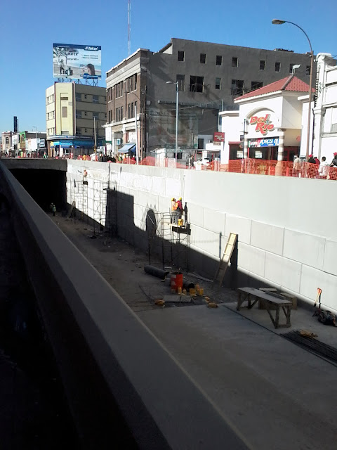 Ciudad Juárez, Chihuahua. 3 de enero de 2014. (Redacción / RanchoNEWS).- Detalle del trabajo de las paredes del túnel que se construye en la calle 16 de Septiembre, al fondo la Avenida Francisco Villa, popularmente conocida como «La Ferrocarril».