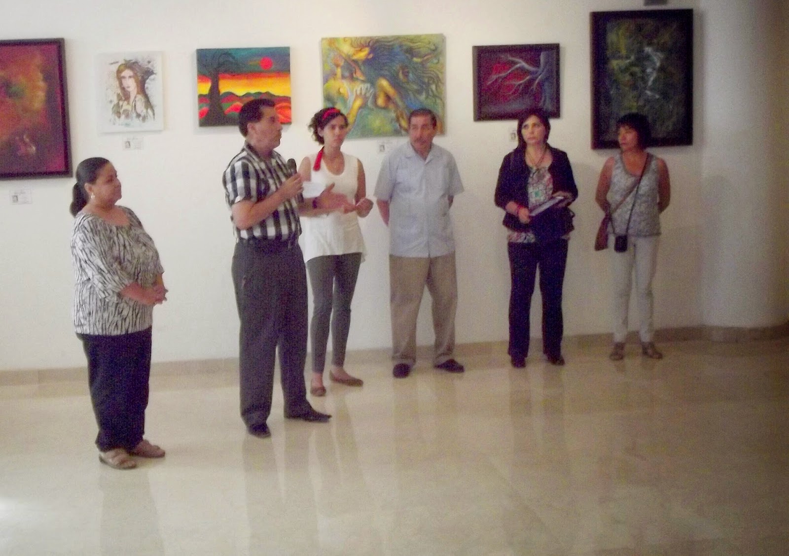 C iudad Juárez, Chihuahua. 14 de junio de 2014. (RanchoNEWS).- Lulu Peña hermana de Adriana, Miguel Ángel Mendoza, Mario Parra, Ileana García, Veronica Leiton y Mariela Paniagua, dando la bienvenida a la jornada. Mas de cien piezas se encuentran en exhibición en la sala de usos múltiples del Centro Cultural Paso del Norte de esta ciudad. La exposición y venta continuará hasta el 21 de junio.